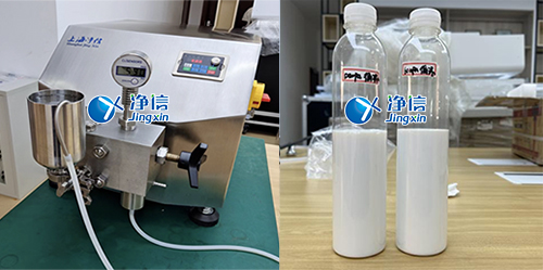 應天津大學浙江紹興研究院客戶需求,對樣品油水混合乳液開展實驗操作。此次實驗是在上海松江工廠科研室開展進行的,選用了凈信高壓納米均質機JXNANO-15來對樣品油水混合乳液進行實驗操作。