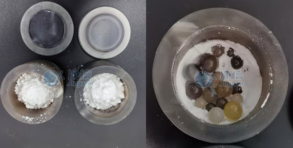 01、準(zhǔn)備工作:行星式球磨儀JX-2G一臺(tái)、瑪瑙罐一套,研磨珠若干以及待研磨的氯化鈉樣本