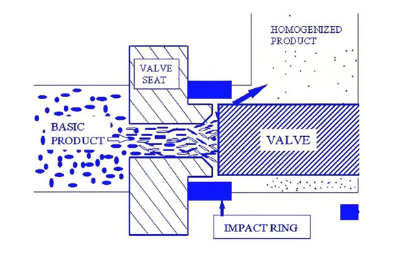 ① 剪切作用,均質(zhì)閥座與閥芯間的縫隙很小,對物料顆粒產(chǎn)生剪切