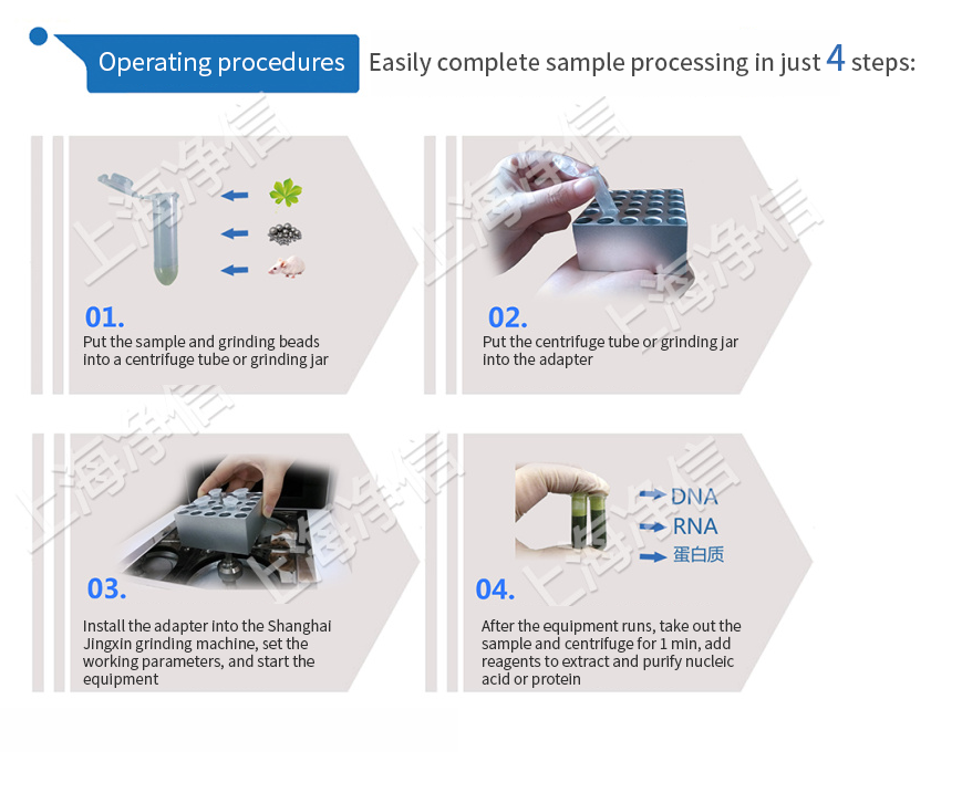 The running process uses the combination of friction and collision force to quickly grind and break the sample in a short time.