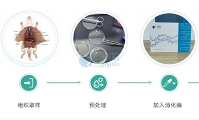 針對(duì)神經(jīng)系統(tǒng)疾病研究中腦組織細(xì)胞分離工作量大,活性低等問題,需要探索一種可穩(wěn)定高效制備高活性的腦組織單細(xì)胞的系統(tǒng)。凈信單細(xì)胞懸液系統(tǒng)包含了自動(dòng)化的單細(xì)胞懸液制備儀和消化酶混合液,