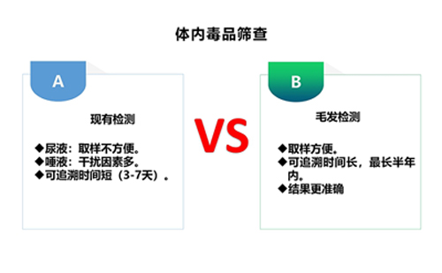 現(xiàn)今比較常見(jiàn)的毒檢測(cè)大致有:尿液、唾液、血液、毛發(fā),不同種類的檢材具有不同的吸毒追溯期,目前以尿液檢測(cè)較為常見(jiàn)。但是,體液檢查會(huì)受到時(shí)間的影響。與尿液、血液等檢材相比,毛發(fā)樣品顯著的優(yōu)勢(shì)是它延長(zhǎng)了吸毒追溯期。毒品隨著血液循環(huán)進(jìn)入毛囊,毒品原體及其代謝物會(huì)被毛發(fā)中的角質(zhì)蛋白固定,并穩(wěn)定地保留在毛發(fā)中。