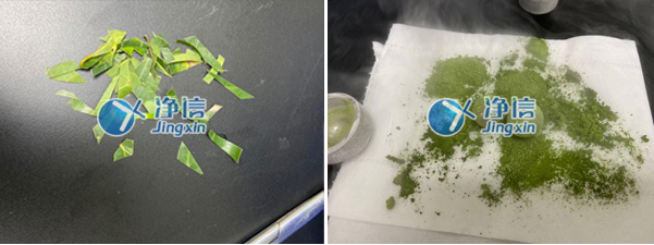 將樟樹葉片剪小段后放入若干ML研磨罐中,加入特定規(guī)格的研磨介質(zhì),然后把研磨罐放入液氮眾泡制幾分鐘,泡制至超低溫后放進(jìn)上海凈信多樣品研磨儀內(nèi),設(shè)置好研磨儀工作時(shí)間和頻率,啟動(dòng)設(shè)備。