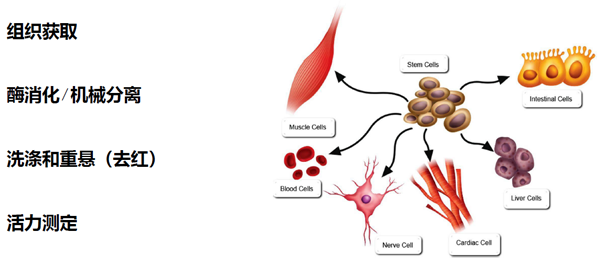 從組織獲得存活單細胞是一個復雜過程,目前市面上組織單細胞化的方法有采用機器處理或者人工處理方法,以上處理方法均存在處理時間長、細胞處于逆境狀態(tài)時間長、細胞得率低、細胞存活率低、操作繁瑣等問題。單細胞懸液儀結(jié)合特定組織松解劑,快速、輕柔、安全、簡捷、高效、自動化的從組織如(脂肪、骨骼肌、動脈血管內(nèi)皮、心臟、肝臟、脾臟、肺泡、腎臟、腦、腫瘤)30min內(nèi)全自動完成組織單細胞的解離。