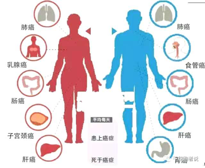 在我國(guó),癌細(xì)胞頻繁“光顧”的人體組織,位居男性發(fā)病率前十位的分別是,肺、胃、肝、食管、大腸癌、膀胱、胰腺、腦、淋巴、腎;女性為肺、乳腺、大腸、胃、肝、食管、卵巢、宮頸、胰腺、腦。“可以說(shuō),這十種腫瘤占據(jù)了所有腫瘤類(lèi)型的80%以上。