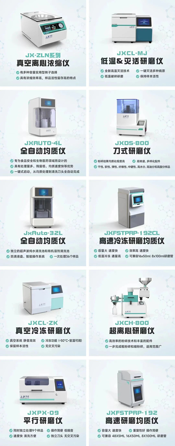 展品主要有:全系列研磨設(shè)備(樣品前處理一體機(jī)/真空離心濃縮儀/三維樣品研磨儀/冷凍研磨儀/便攜手提式研磨儀等)、全自動智能設(shè)備、超聲設(shè)備(清洗機(jī)/DNA打斷儀/細(xì)胞破碎儀)、實(shí)驗(yàn)室常規(guī)小儀器(藍(lán)光切膠儀/懸臂式分散機(jī)/三維多點(diǎn)渦旋振蕩器/PCR儀/微孔板離心機(jī)等)