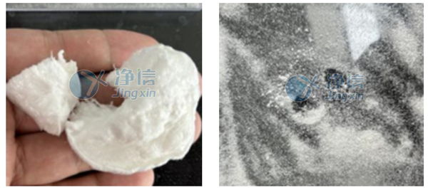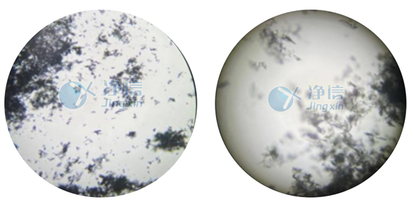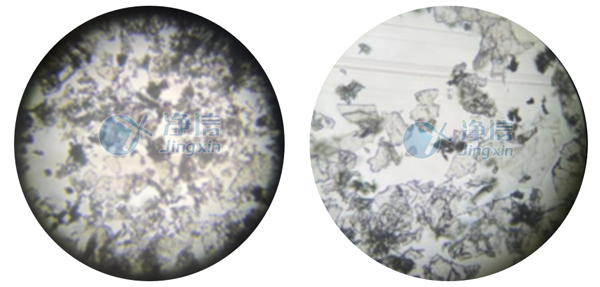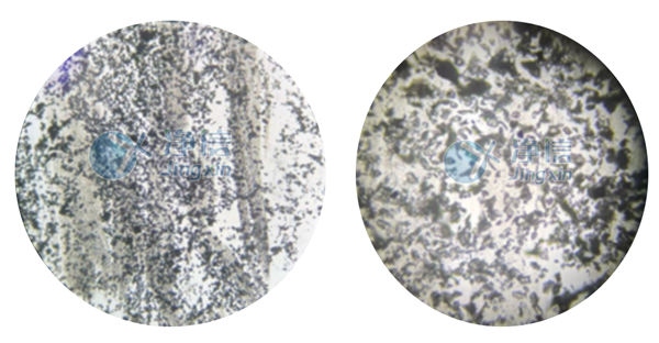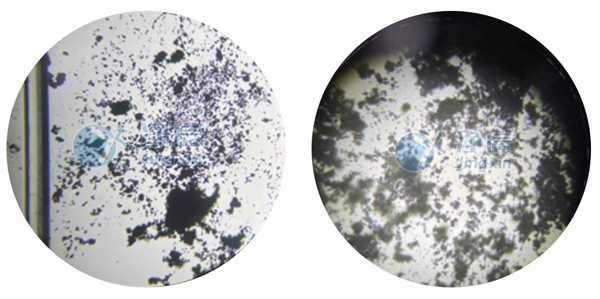 經(jīng)全自動浸入式液氮冷凍研磨儀處理后的PVA和絲素蛋白在肉眼觀察下,呈現(xiàn)細膩的狀態(tài)。通過顯微鏡觀察,和以前用舊款儀器研磨的樣品對比發(fā)現(xiàn),無論是在低倍還是高倍狀態(tài)下,通過凈信研磨儀處理的樣品的顆粒細膩程度都較優(yōu)。舊款儀器處理的樣品在高倍鏡下觀察還存在一定程度的組織結(jié)構(gòu),而凈信研磨儀處理的樣品已成均勻顆粒狀。