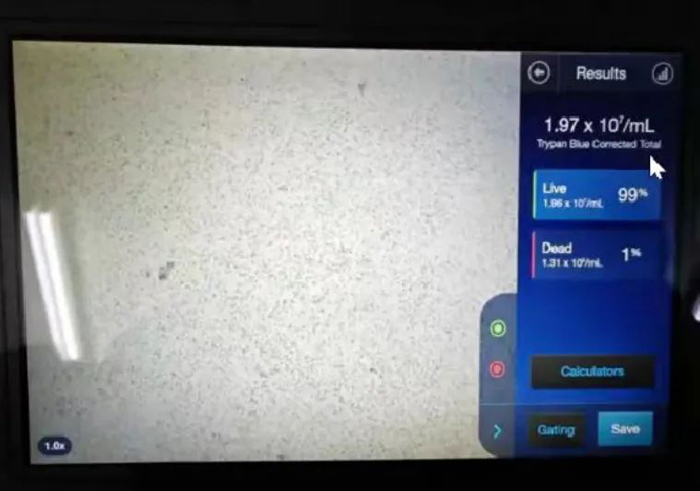臺(tái)盼藍(lán)染色,細(xì)胞計(jì)數(shù)儀局部圖片