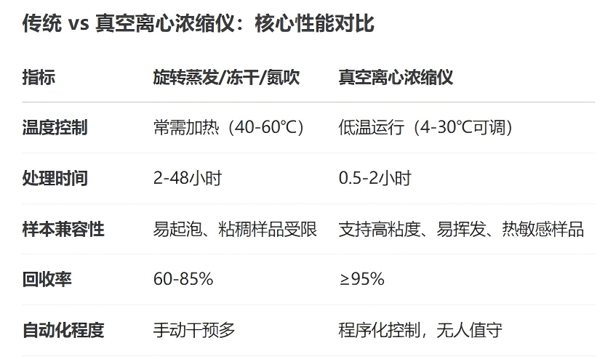 通過真空減壓+離心力+精準(zhǔn)控溫三重技術(shù)聯(lián)動(dòng),在低溫環(huán)境下快速蒸發(fā)溶劑,成為高活性、高通量濃縮的革新方案!