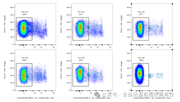 實驗結(jié)果顯示,制備的脂肪單細胞懸液活率接近100%(下方流式結(jié)果圖),優(yōu)于常規(guī)制備方法的活率水平。高活率細胞不僅能確保下游實驗的準確性,更能減少樣品浪費,降低科研成本。