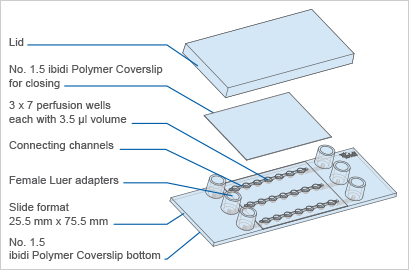 具有3 x 7孔的可灌注通道μ-Slide,用于長期球體培養(yǎng)和高端顯微鏡觀察