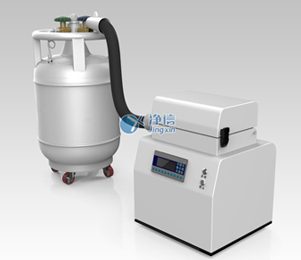 (3)開啟液氮控制開關,液氮流入粉碎罐體后,再進行物理降溫。一分鐘左右,迅速降溫到,-196度