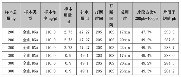 可對(duì)不同起始量的樣品體積進(jìn)行打斷,可得到高重復(fù)的DNA剪切結(jié)果,不同初始樣本量均能得到一致性的片段。