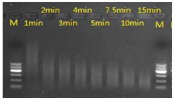 4.相同處理時(shí)長(zhǎng)的樣本混合后,瓊脂糖凝膠電泳檢測(cè)結(jié)果: