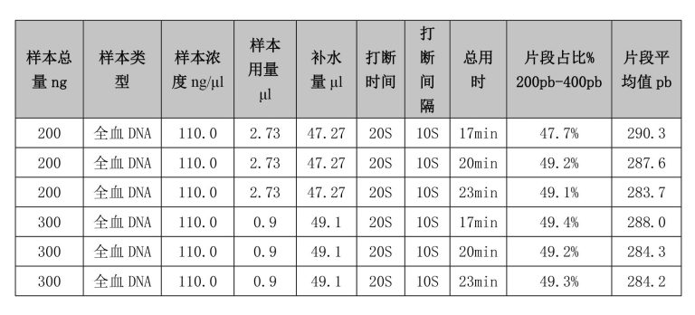 可對(duì)不同起始量的樣品體積進(jìn)行打斷,可得到高重復(fù)的DNA剪切結(jié)果,不同初始樣本量均能得到一致性的片段。