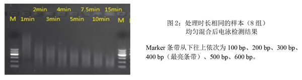 4、相同處理時(shí)長的樣本混合后,瓊脂糖凝膠電泳檢測結(jié)果
